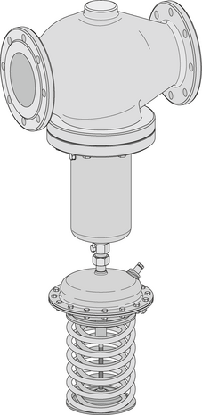 • Válvula de un asiento con resorte de tensión con compensación de presión