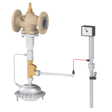 • Compuesto por una válvula con restricción ajustable, un accionamiento y un termostato de regulación
