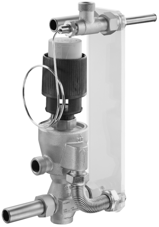 - Compuesto por una válvula, un control hidráulico y un termostato de presión de vapor