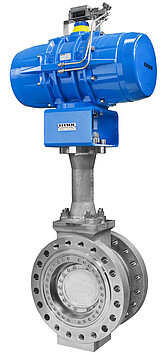 - Válvula de mariposa de regulación e interrupción para oxígeno con triple excentricidad