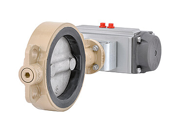 • Compuesta por una válvula de mariposa de doble brida y un accionamiento