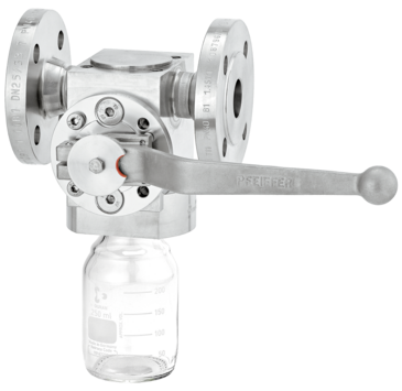 • Válvula de muestreo hermética sin zonas muertas, para la toma de muestras líquidas en caudales sin bypass