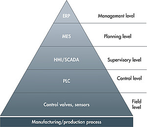 En las plantas existentes de la industria de procesos, la estructura de automatización suele ser un sistema cerrado. Los equipos de campo se integran en las plantas según el principio de la pirámide de automatización. En los casos en que la conexión es posible, la información y los datos se transmiten jerárquicamente del nivel de campo al nivel de gestión y viceversa. Los nuevos enfoques intentan romper esta jerarquía. SAMSON, como líder del desarrollo de las válvulas inteligentes, persigue y apoya activamente esta iniciativa.
